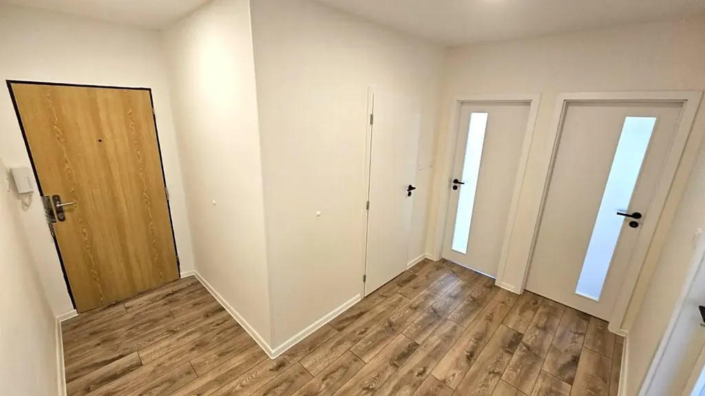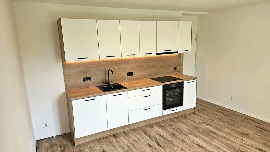 V bytě proběhla velice zdařilá a nákladná rekonstrukce. V kuchyni je moderní kuchyňská linka s vestavnými kamny ,varnou deskou a digestoří. V koupelně je prostorný sprchový kout, umyvadlová skříňka se zrcadlem a WC. Jsou zde nové interiérové dveře s obložkami a všechny podlahy jsou sjednoceny do jednoho odstínu,