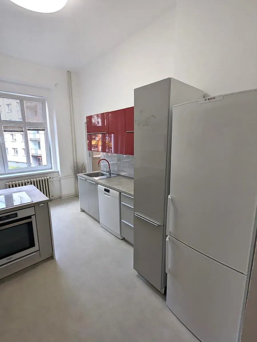 Interiér bytu zaujme moderní kuchyňskou linkou na míru se všemi spotřebiči. Kuchyň, koupelna a WC byly nově zařízeny v roce 2022.