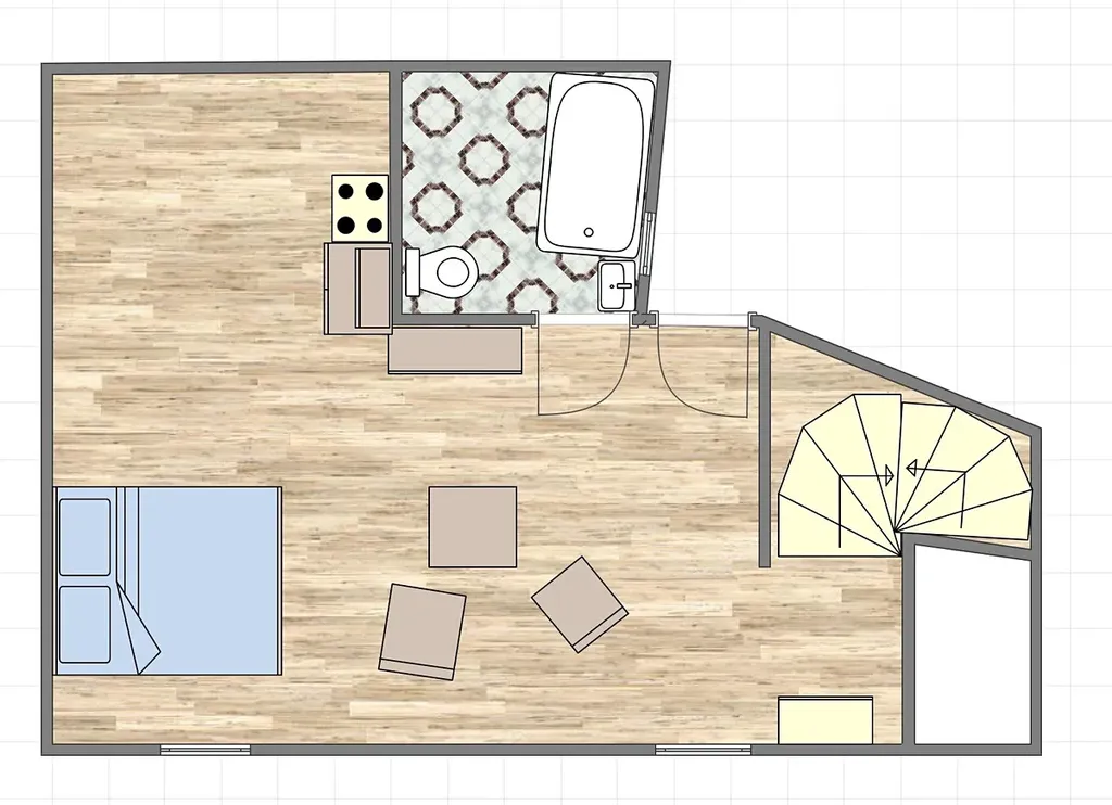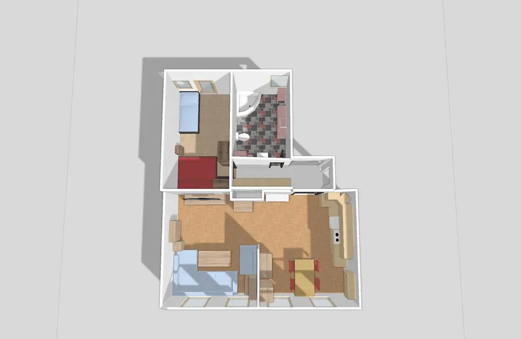 nebo naopak spojení pater a propojení se zadní částí domu (např. zimní zahradou) vzniknou tak 2 prostorné bytové jednotky + půdní vestavba