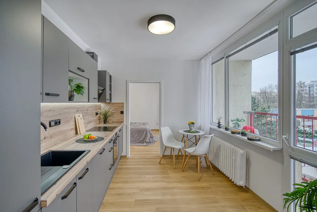 Nabízíme k pronájmu krásný byt 3+1 se třemi lodžiemi, po kompletní rekonstrukci. Byt se nachází ve 4. nadzemním podlaží (3. patře) panelového domu s výtahem a disponuje novou kuchyňskou linkou se sklokeramickou varnou deskou, elektrickou pečící troubou, myčkou a digestoří. V koupelně se nachází vana, umyvadlo se skříňkou a skříňka se zrcadlem. Toaleta je samostatná a je u ní také umyvadlo se skříňkou. Součástí pronájmu je i sklepní kóje ve společných prostorách domu. Byt není vybaven nábytkem. Nájemné zde činí 15 000,- Kč, záloha na služby 2 500,- Kč pro 1 osobu + 500,- Kč každá další osoba. Vratná kauce je 25 000,- Kč. Při rezervaci se platí provize realitní kanceláři ve výši 18 000,- Kč. Elektřina se přepisuje na nájemce. Byt je volný ihned. V případě zájmu o prohlídku či více informací neváhejte kontaktovat makléře.