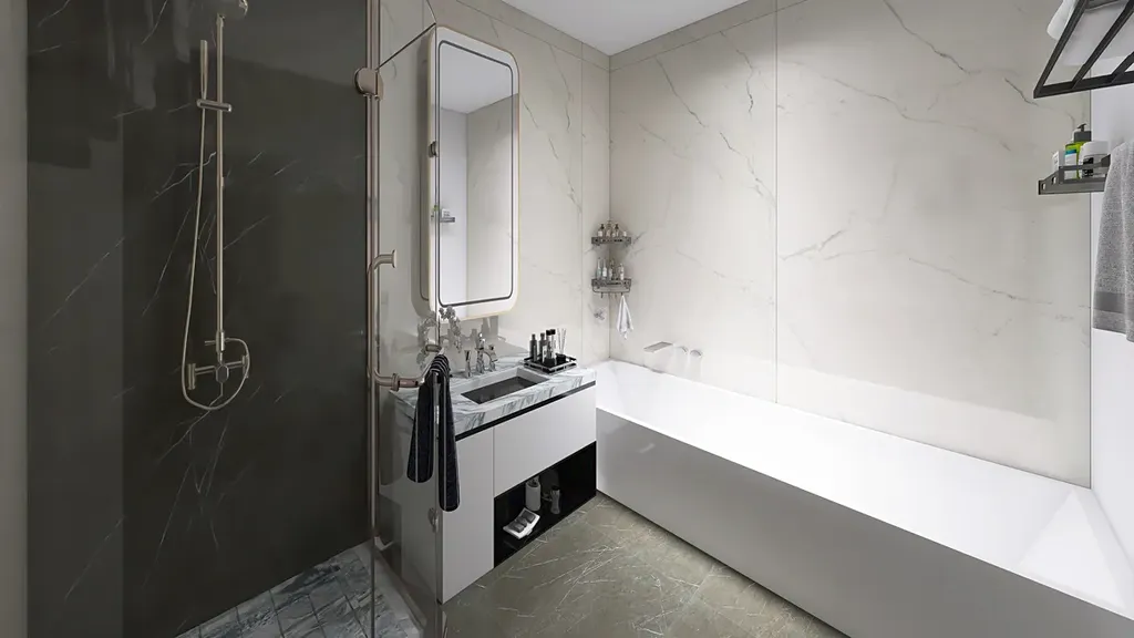 Koupelna s vanou i sprchou (5,95 m²)