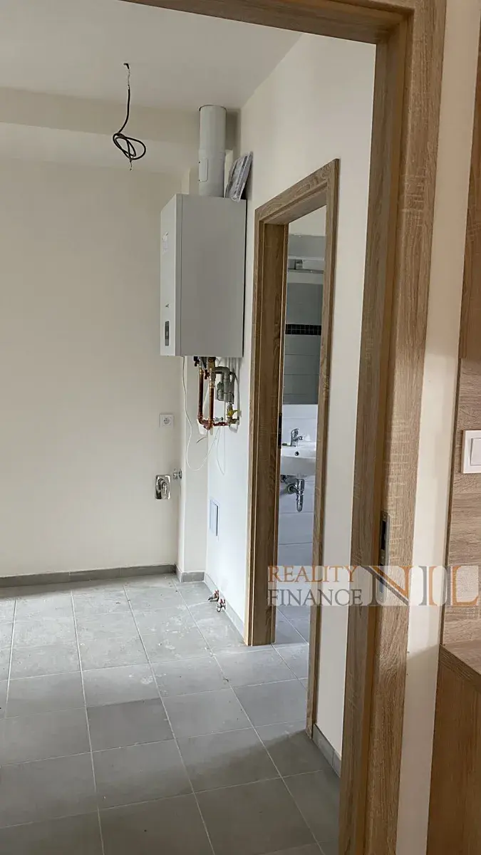 Byt je vybaven kuchyňskou linka včetně vestavěných spotřebičů (elektrická trouba, varná deska, digestoř). Podlahy jsou v kombinaci vinylu a dlažby. Vytápění a ohřev vody je pomocí plynového kotle.