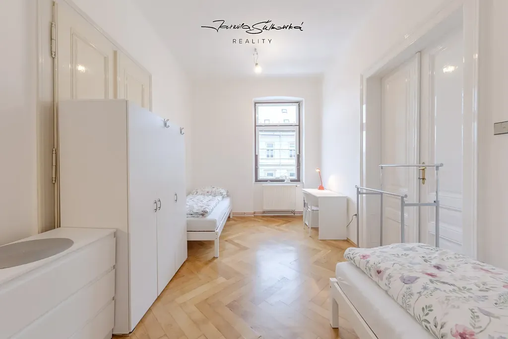 Byt k pronájmu v II. nadzemním podlaží prošel citlivou rekonstrukcí, která respektuje původní ducha domu — žádná sterilní novostavba, ale prostor s příběhem. Velkorysých 108 m² nabízí tři neprůchozí pokoje, stylovou koupelnu se sprchovým koutem a dostatek prostoru pro osobní věci. Kuchyně je vybavena novou, nadčasovou linkou a lednicí — ideální pro společné večeře, ranní kávu nebo noční debaty nad skripty. A když potřebuješ ticho a klid? Čeká na tebe útulná studovna, kde se ti bude soustředit úplně jinak než v přeplněné knihovně.