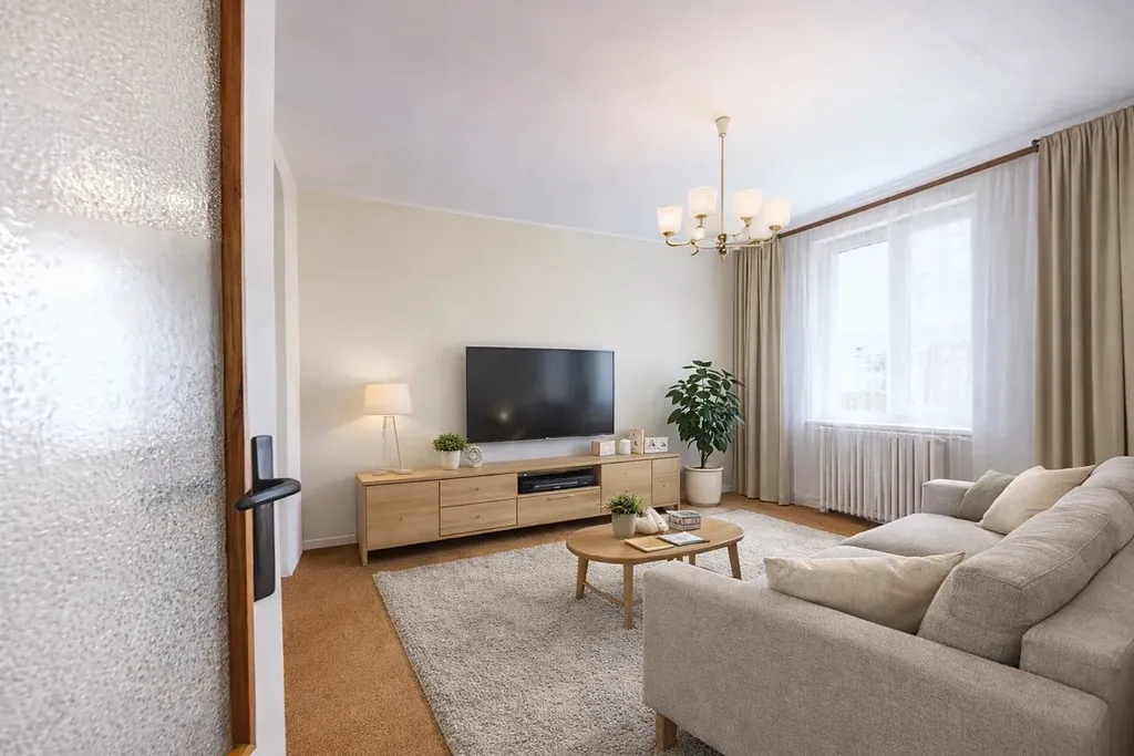 Celková obytná plocha činí 61,46 m² a byt je v původním zachovalém stavu, ideální pro rekonstrukci. Zásadní výhodou je velmi praktické dispoziční řešení, kdy je ložnice chytře umístěna za obývacím pokojem – nabízí tak majitelům klid a soukromí i při každodenním provozu domácnosti. K bytu náleží sklepní kóje.