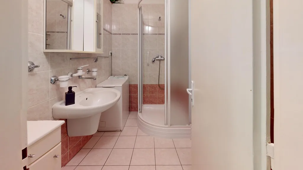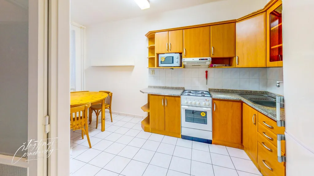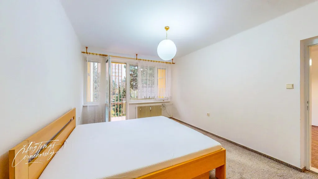 Dispozice bytu je praktická a dobře promyšlená. Dvě lodžie orientované na jihovýchod zajišťují dostatek denního světla a příjemné slunce zejména v dopoledních hodinách. Byt je částečně vybavený a nabízí nadstandardní množství úložných prostor dvě velké vestavné skříně a samostatnou místnost, kterou lze využít jako komoru nebo šatnu dle potřeb nájemníků. K bytu dále náleží sklep a k dispozici je také další komora umístěná na chodbě ve společných prostorách domu.
