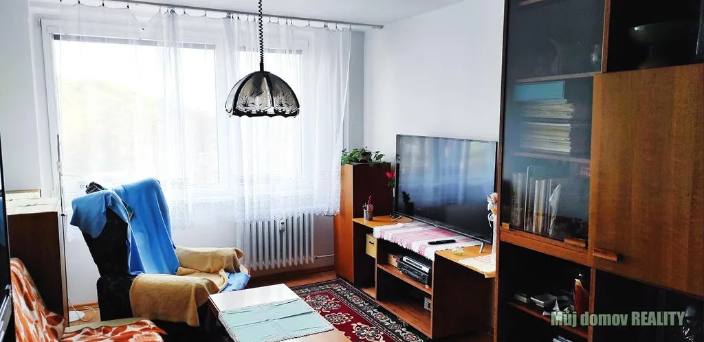 Byt je vybaven bezpečnostními vstupními dveřmi. Kuchyňská linka je osazena plynovou varnou deskou, elektrickou troubou, digestoří, lednicí s mrazákem, mikrovlnnou troubou a varnou konvicí. K dispozici je jídelní stůl se židlemi. Obývací pokoj je zařízen sedací soupravou, křeslem, konferenčním stolkem, obývací stěnou a televizí. V koupelně je automatická pračka. Další úložné prostory poskytují vestavěné skříně v chodbě a předsíni.