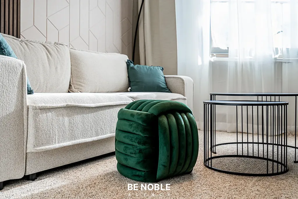 Byt je plně vybavený a připravený k okamžitému nastěhování. Součástí je moderní vestavěná kuchyňská linka s dostatkem úložných prostor, varnou deskou, lednicí, vestavěnou digestoří a mikrovlnnou troubou. Obytná část je zařízena kvalitní rozkládací pohovkou, komodou a jídelním stolem pro dvě osoby. Závěsy, záclony a designová svítidla dotvářejí příjemnou atmosféru. V předsíni před předáním proběhne instalace úložných prostor. Velké okno, kterým proudí spousta světla, a výhled do klidného zeleného vnitrobloku z 5. patra. Koupelna se sprchovým koutem, záchodem a umyvadlem. Pod umyvadlem je úložný prostor.