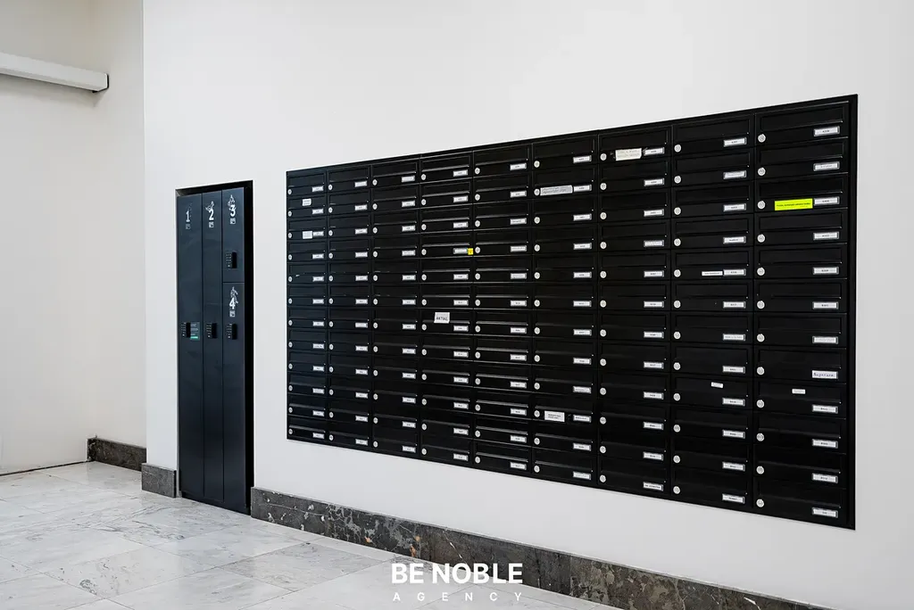 K bytu patří velký sklep 3 m² – ideální místo pro vše, co nemusí být přímo v bytě. Je přístupný pohodlně výtahem. Domácí telefon s kamerovým systémem. Vstup do budovy je na čipy, číselník či QR kód. V domě je k dispozici i laundry box servis.