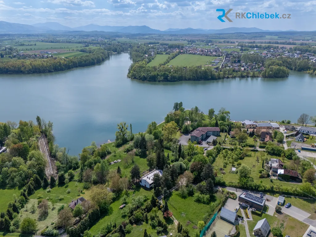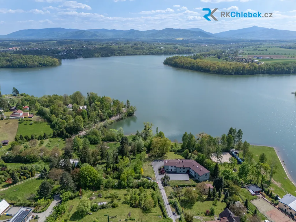 Z pozemku i z terasy nemovitosti je nádherný výhled nejen na přehradu, ale i na Beskydy.