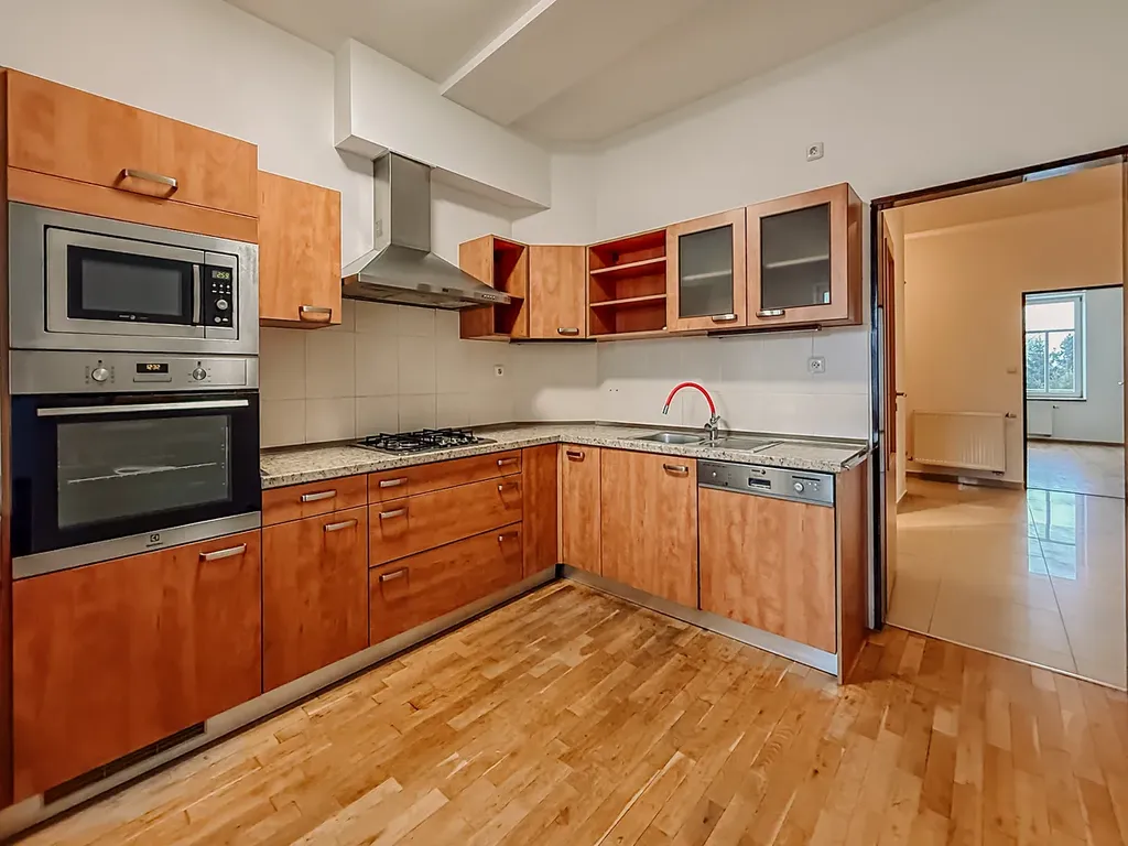 Nabízíme k pronájmu byt 4+1 (5+kk) o celkové ploše 104 m2 ve 2. patře bytového domu v centru města, velká kuchyň s plně vybavenou kuchyňskou linkou (plynový sporák, trouba, mikrovlnka, myčka), prostorná komora s úložnými regály a skříněmi, velká šatní skříň v ložnici, dvě ložnice mají okna do klidného dvora a zahrady, vlastní plynové ústřední vytápění, plyn a elektřina se převádí na nájemce, ostatní služby jsou cca 1500,- Kč měsíčně, PENB uvádíme v nejhorší kategorii - zpracovává se.