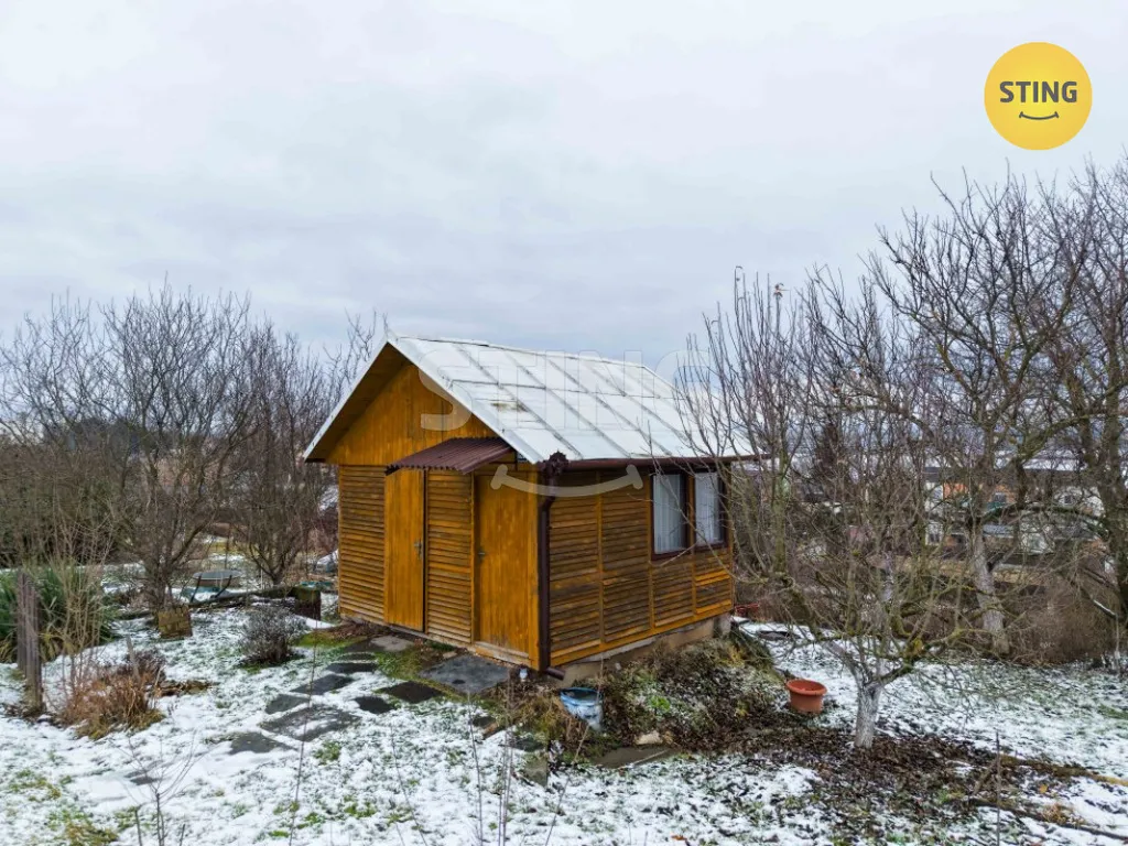 Prodej zahradní chaty Olomouc - Slavonín. Jedná se o samostatně stojící dřevěnou chatu s pozemkem. Je umístěna ve svahu zahrádkářské osady nad ulicí K Lesíku.