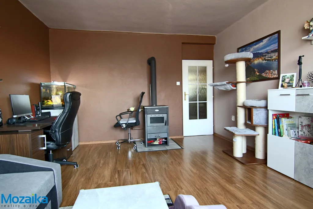 Tento byt prošel před několika lety částečnou rekonstrukcí a je se ve velmi dobrém stavu, připraveném pro okamžité nastěhování. Všechna okna jsou plastová, což zajišťuje tepelnou izolaci a úsporu energií. Koupelna je vybavena vanou a umyvadlem. Vytápění je řešeno prakticky pomocí ústředního topení s kotlem na elektřinu, přičemž ohřev vody zajišťuje bojler. V obývacím pokoji najdete také krbová kamna s výměníkem, která vytvoří příjemnou atmosféru zejména v chladných zimních večerech.