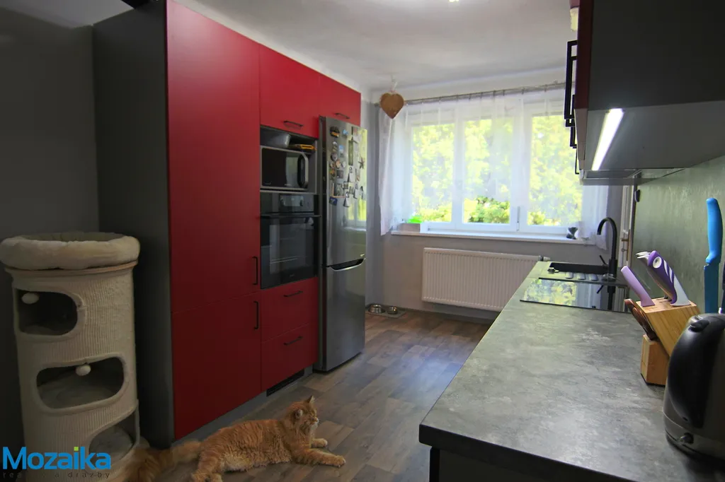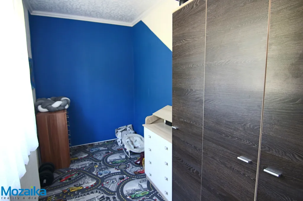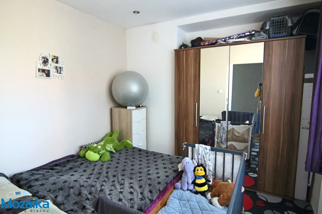 Dispozičně se byt skládá z prostorného pokoje o výměře 19,20 m², menšího pokoje 7,32 m², ložnice, kuchyně 13,20 m², jídelny 5,72 m², předsíně 4,52 m², koupelny 3,90 m² a samostatného WC 0,8 m². Kuchyně je plně vybavena kuchyňskou linkou s varnou deskou a odsavačem par, takže můžete začít vařit hned po nastěhování. K bytu dále náleží dva sklepy v suterénu domu o celkové výměře 7 m², kde najdete dostatek úložného prostoru.