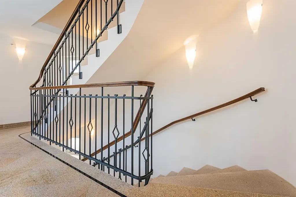 Reprezentativní prostorný byt 3+1 (2ložnice, 2 koupelny), s podlahovou plochou 117 m2 a s prostornou terasou 57 m2, která nabízí hezké výhledy. Byt je situovaný v posledním 6. patře kompletně zrekonstruovaného domu se zachovalými původními art deco prvky. Výtah jede přímo do bytu.