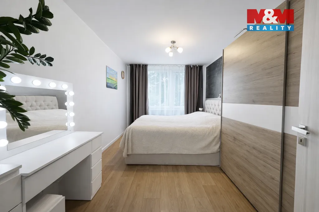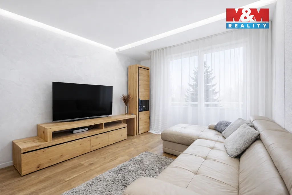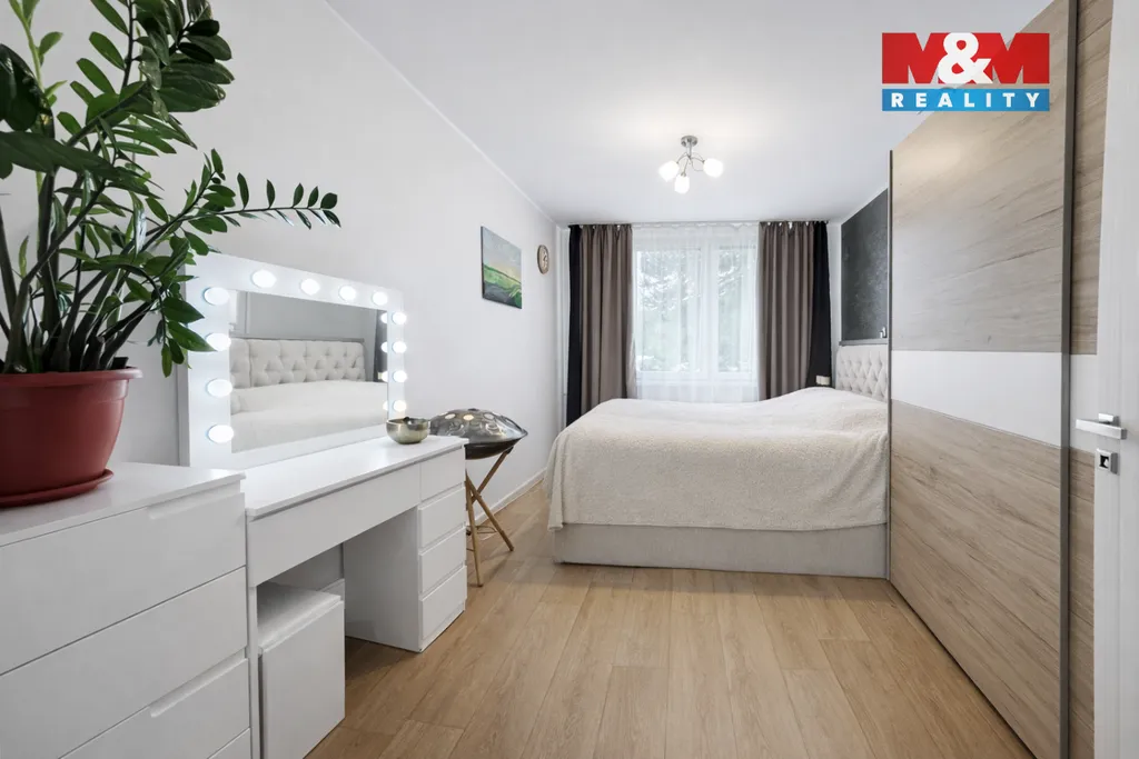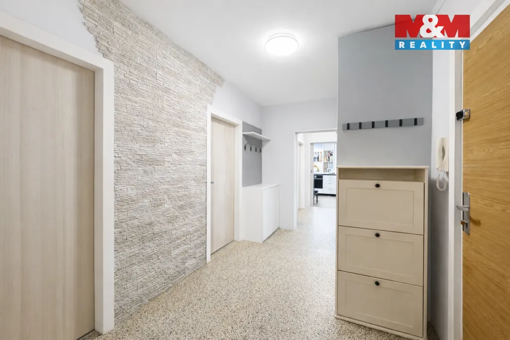 Velkou předností je praktické rozvržení: prostorný obývací pokoj s kuchyňským koutem tvoří samostatnou část bytu a od zbytku je oddělen širokou chodbou, ze které se vstupuje do tří ložnic. Koupelna je samostatná, vybavená vanou. V bytě je zároveň dostatek úložných prostor díky vestavěným skříním.