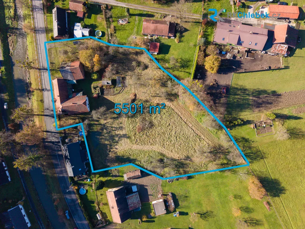 Nabízíme k prodeji rodinný dům s rozsáhlým pozemkem vhodným k výstavbě dalších RD nebo i jinému komerčnímu využití. Územní plán je tomu nakloněn. Celková plocha pozemků je 5501m2 a je možné je rozdělit na několik parcel pro výstavbu.