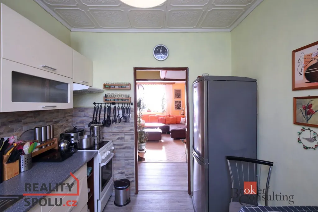 Byt se skládá ze tří samostatných pokojů, kuchyně, koupelny se sprchovým koutem a samostatného WC. Nachází se ve 3. patře udržovaného bytového domu bez výtahu.