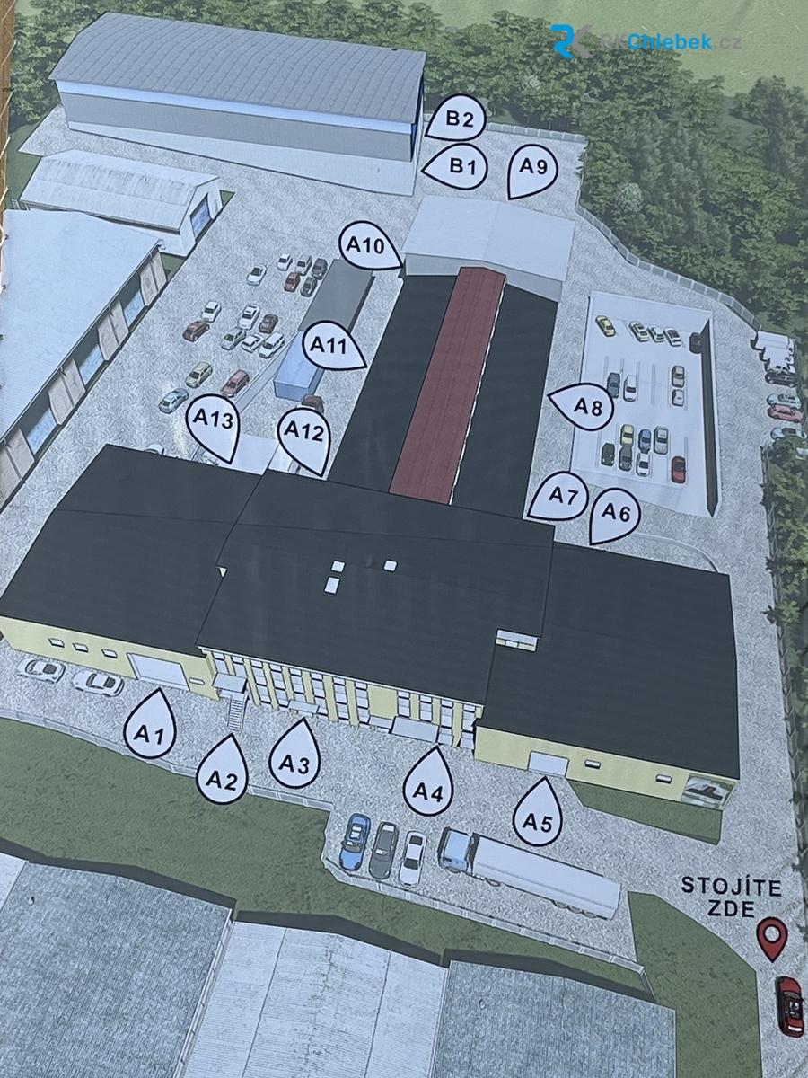 • skladové kóje v hale B (vstup B2) – od 48 m² do 447 m² ² (cena 120 Kč/ m² měsíčně + 1000 Kč služby)