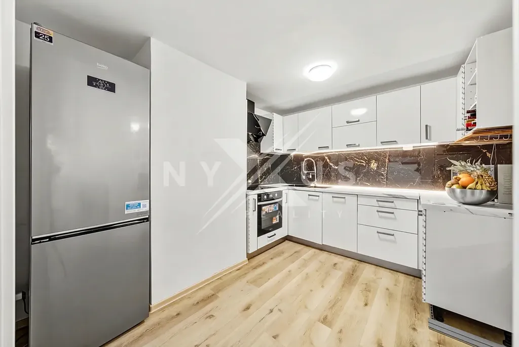 Vybavení (postel, pohovka, kuchyňská linka) součástí prodeje - používáno cca 1 rok. Nové spotřebiče - pračka se sušičkou, trouba, indukční varná deska, myčka na nádobí. Internet - vysokorychlostní připojení (400 Mb/s download i upload).
