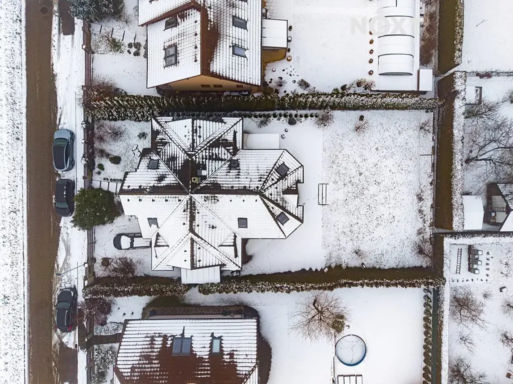 Okna a vstupní dveře jsou plastová s izolačním dvojsklem. O vytápění domu a ohřev teplé vody se stará plynový kondenzační kotel z roku 2021. Na podlaze je kombinace keramické dlažby a laminátu; schodiště je vyrobeno z masivního dubového dřeva. Vše působí nadčasově a prakticky – žádné efektní výstřelky, které by rychle zestárly.