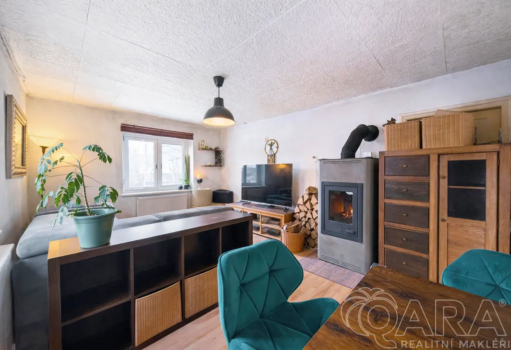 V přízemí (1. NP) o celkové výměře 68 m² se nachází bytová jednotka o dispozici 2+1, která zahrnuje koupelnu vybavenou vanou a pračkou. Toaleta je umístěna samostatně. Dům je rovněž částečně podsklepený, přičemž sklep má výměru 8,3 m². Vytápění je řešeno krbem s rozvodem tepla do radiátorů a termostatem, což zajišťuje příjemné teplo v celém domě.