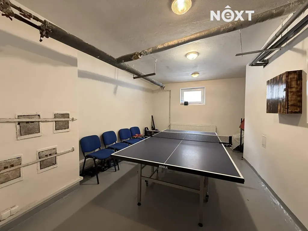 Výhodou bytu je velký zděný sklep 5,8m2 v přízemí domu a společné prostory jako prádelna, sušárna kolárna a herna.
