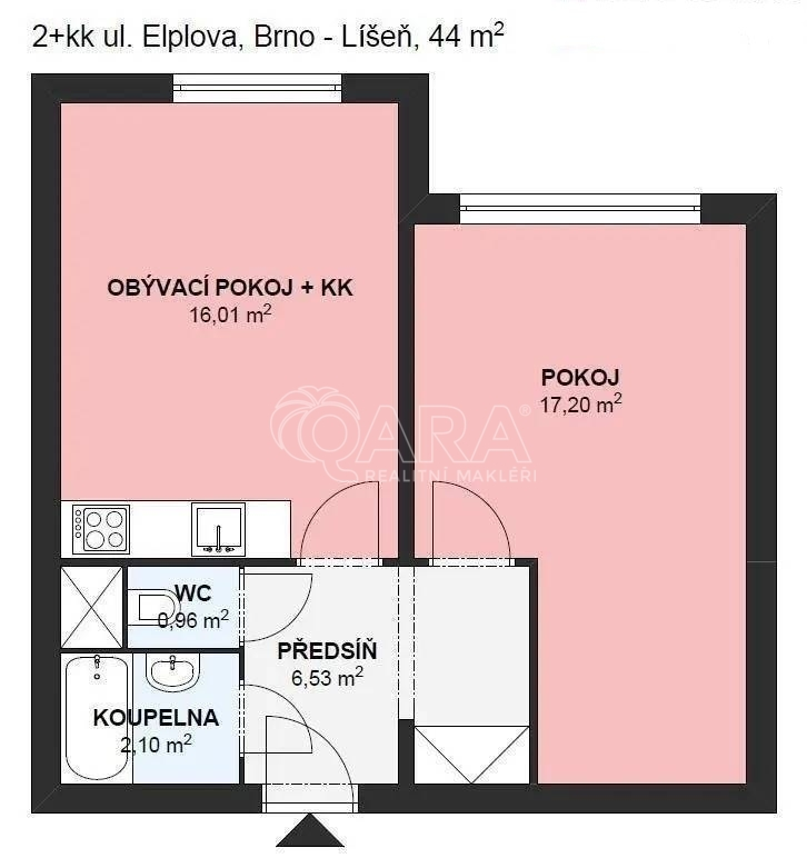 Nabízíme k prodeji slunný byt 2+kk o užitné ploše 44 m², nacházející se v atraktivní lokalitě na ulici Elplova v Brně - Líšni. Tento byt se nachází ve 7. patře osmipodlažního panelového domu, který je po revitalizaci.