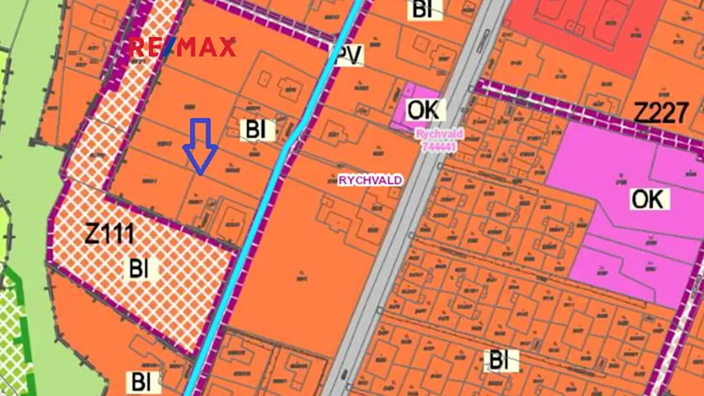 Pozemek je rovinatý, dle územního plánu je veden v zastavitelném území, BI – bydlení individuální, s podmínkou realizace staveb do výšky 2.NP, s min. plochou pozemku 800m² a mírou intenzity využití pozemku pro výstavbu max. 40% plochy.