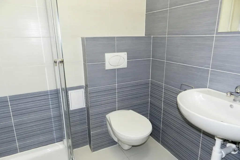 Ze vstupní haly je vstup do koupelny se sprchovým koutem a WC.