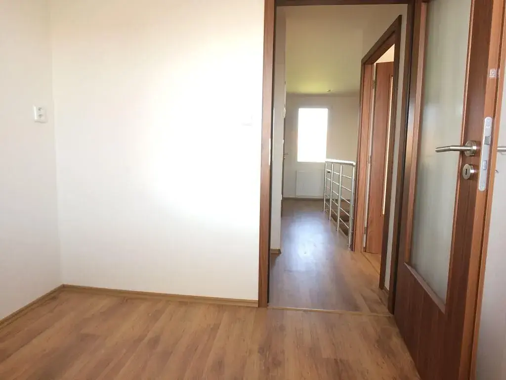 horní patro dvě prostorné ložnice s balkonem, menší ložnice, koupelna s vanou, samostatná toaleta, vestavěná skříň.