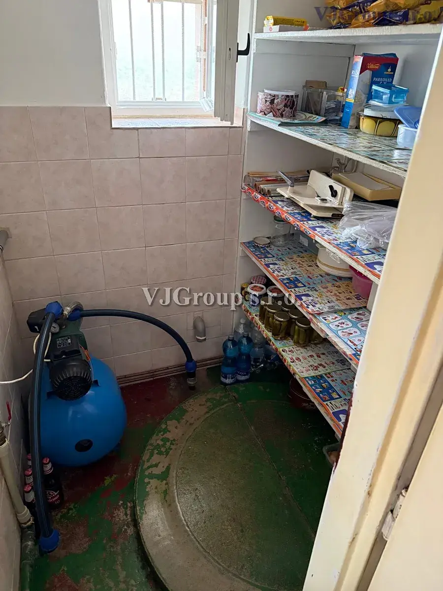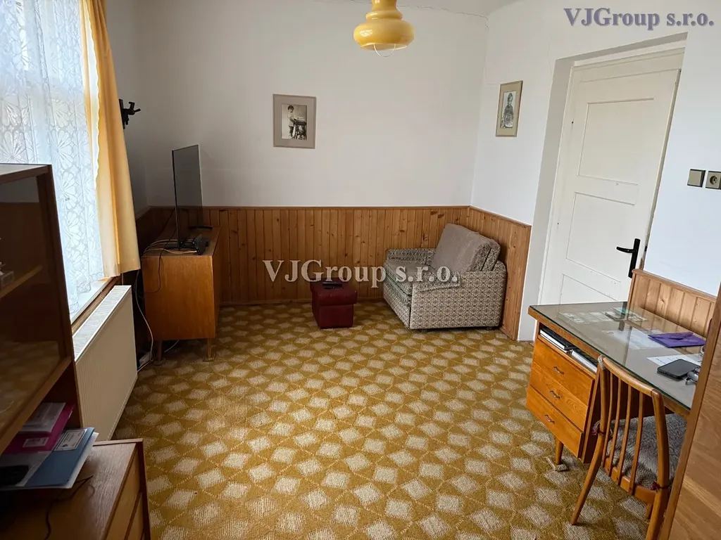 Dům sestává v přízemí z obytné zóny sestávající ze zádveří, předsíně, samostatného WC, kuchyně s linkou a plynovým sporákem, nově zrekonstruované koupelny se sprchovým koutem, umyvadlem a místem na pračku, obývacího pokoje, dalšího průchozího pokoje a ložnice průchozí zpět do kuchyně. Z předsíně jsou pak samostatnými schodišti provedeny vchody do sklepa a na půdu.