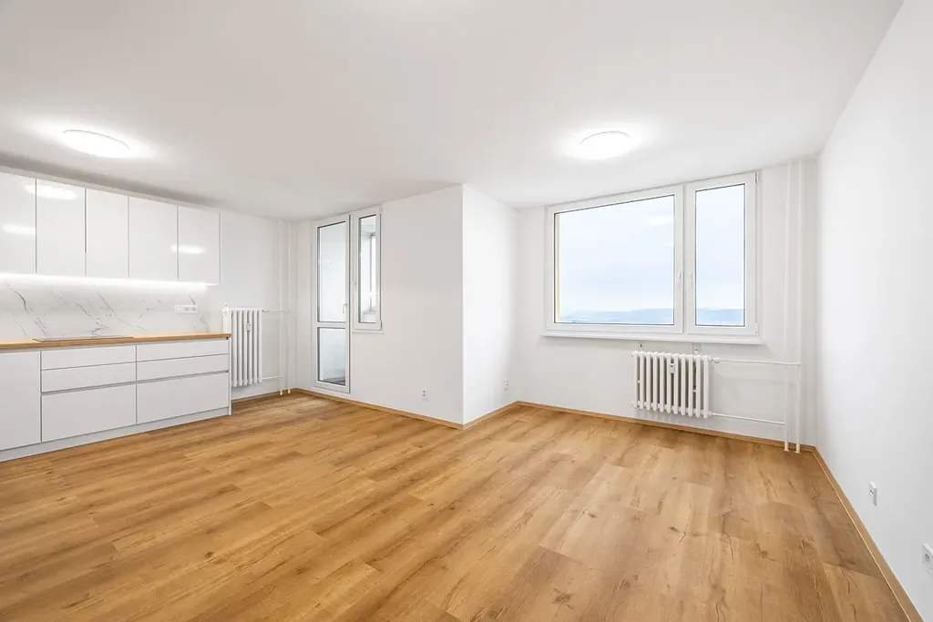 Nabízím kompletně zrekonstruovaný krásný byt 3+kk s výhledem do dáli z 11. patra revitalizovaného domu.