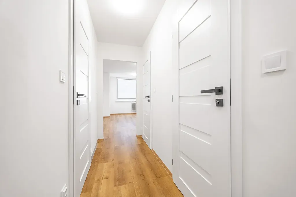 Byt je dispozičně velmi dobře řešený s kuchyní a obývacím pokojem. Dále se dvěma prostornými ložnicemi, nádhernou koupelnou a samostatnou toaletou a šatnou. Byt má zasklenou lodžii a sklep. Byt je velmi tichý a v budoucnu blízko stanice metra D. Parkování je bezproblémové kolem domu na prostorném parkovišti.