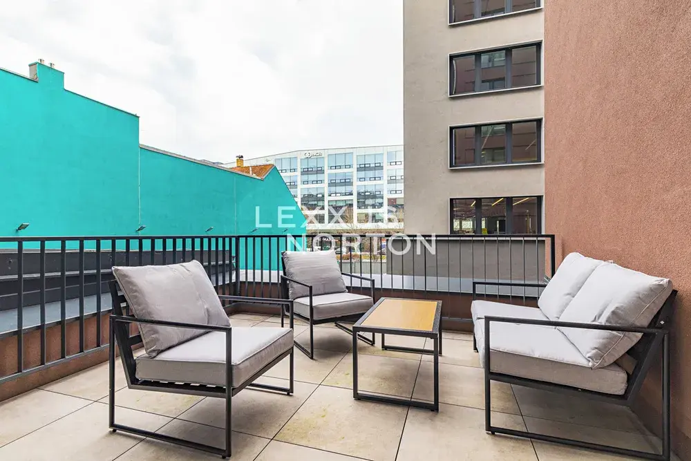 Nabízíme nový elegantní byt k pronájmu o velikosti 52 m2 s terasou (9 m2), situovaný v 1. patře rezidenčního projektu Iconik s výtahem. Nemovitost se nachází v krásné lokalitě Prahy 8 - Karlín  disponující veškerou občanskou vybaveností a dobrou dopravní infrastrukturou.