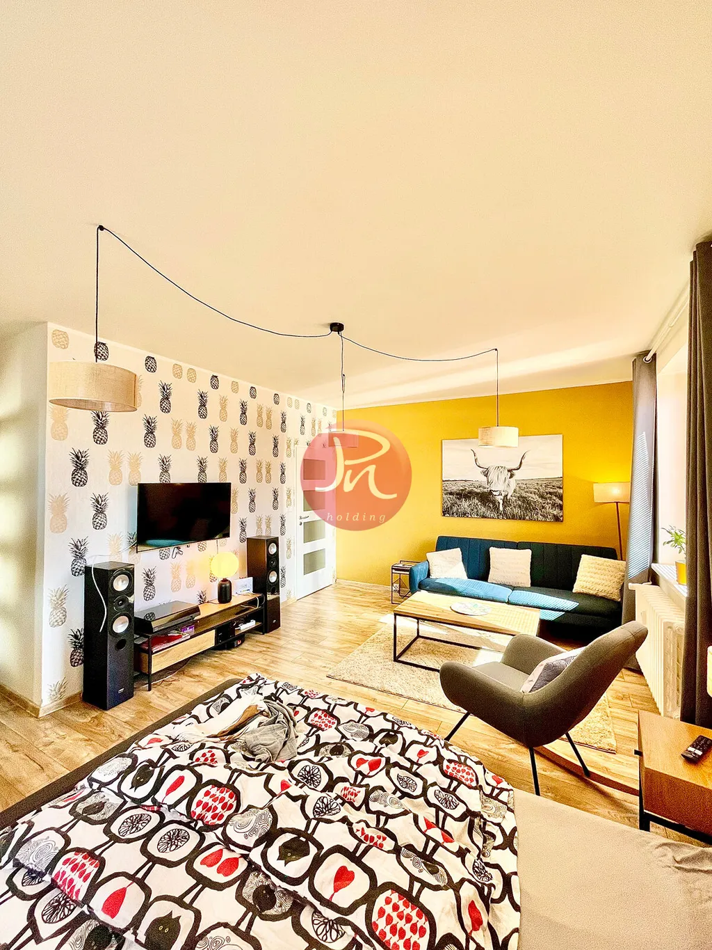 Byt je připraven do posledního detailu: k dispozici máte kompletně vybavenou kuchyň s nádobím, spotřebiči, pračku, ale také peřiny, polštáře a povlečení. Zkrátka vše, co ke komfortnímu bydlení potřebujete.