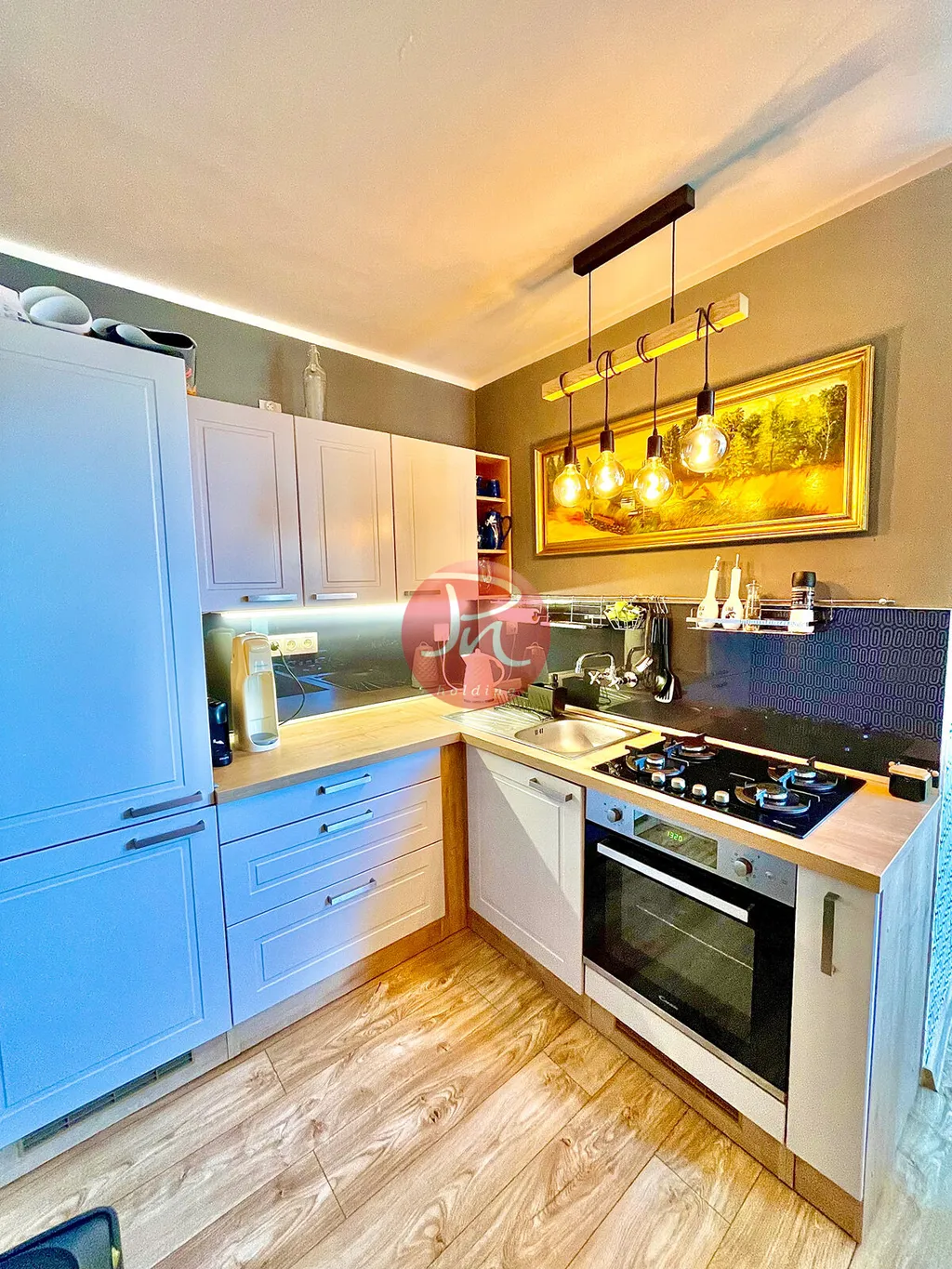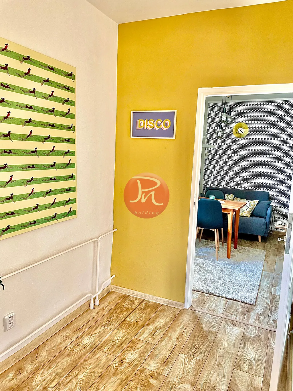 Nachází se ve druhém patře menšího domu bez výtahu na ulici Garáží. Interiér je zařízený s citem pro detail a vytváří útulnou, moderní atmosféru.