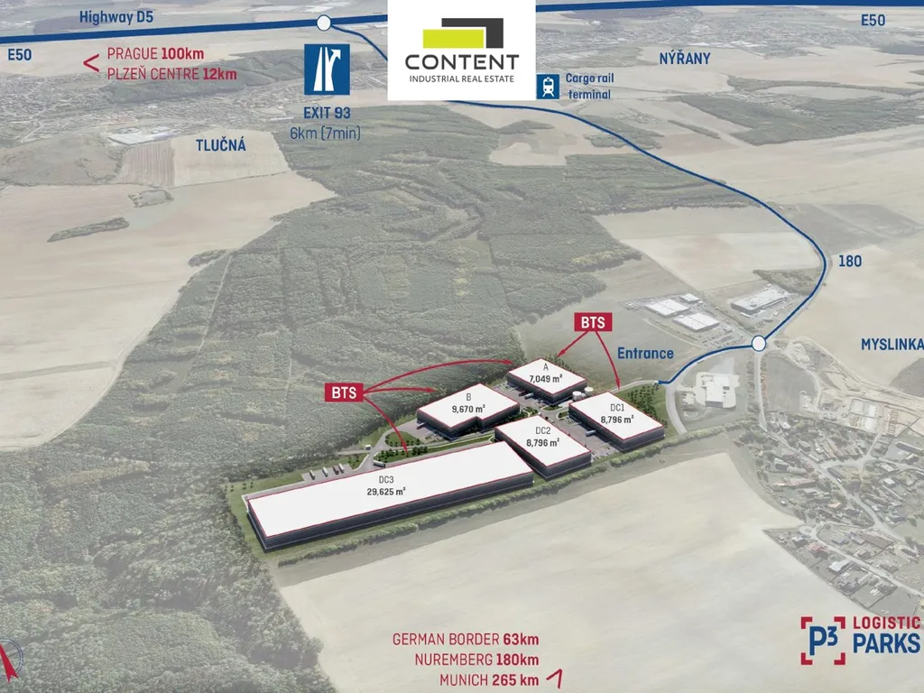 V zastoupení majitele a bez provize nabízíme industriální prostory pro sklad nebo výrobu o velikosti 8727 m², v lokalitě Plzeň - Myslinka, D5 EXIT 93, formou výstavby budovy na míru, umístěné v novém komerčním parku.
