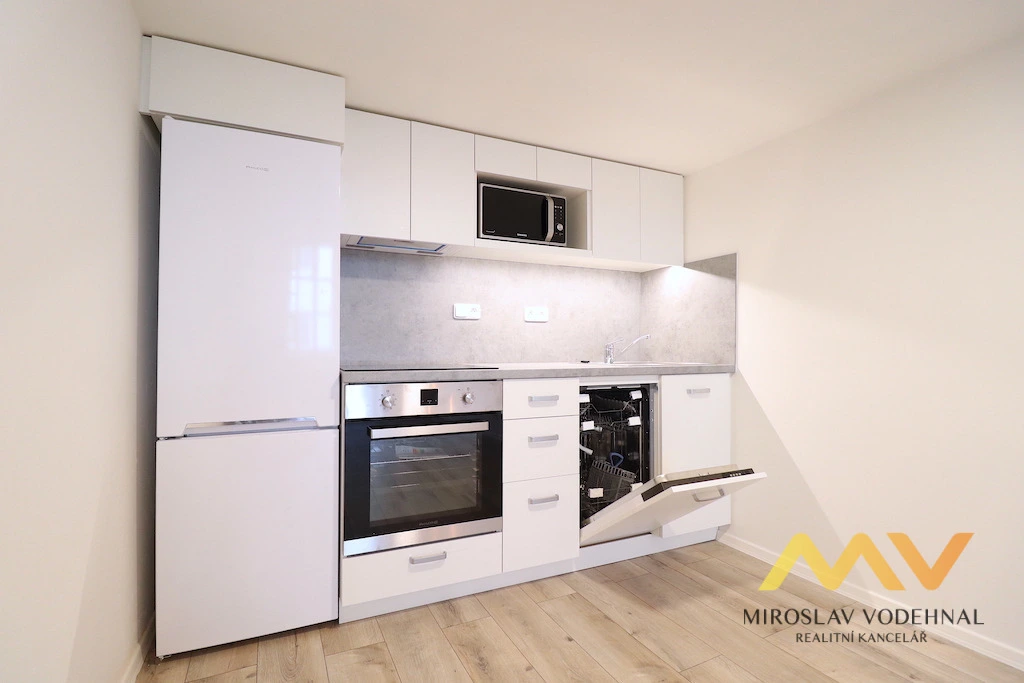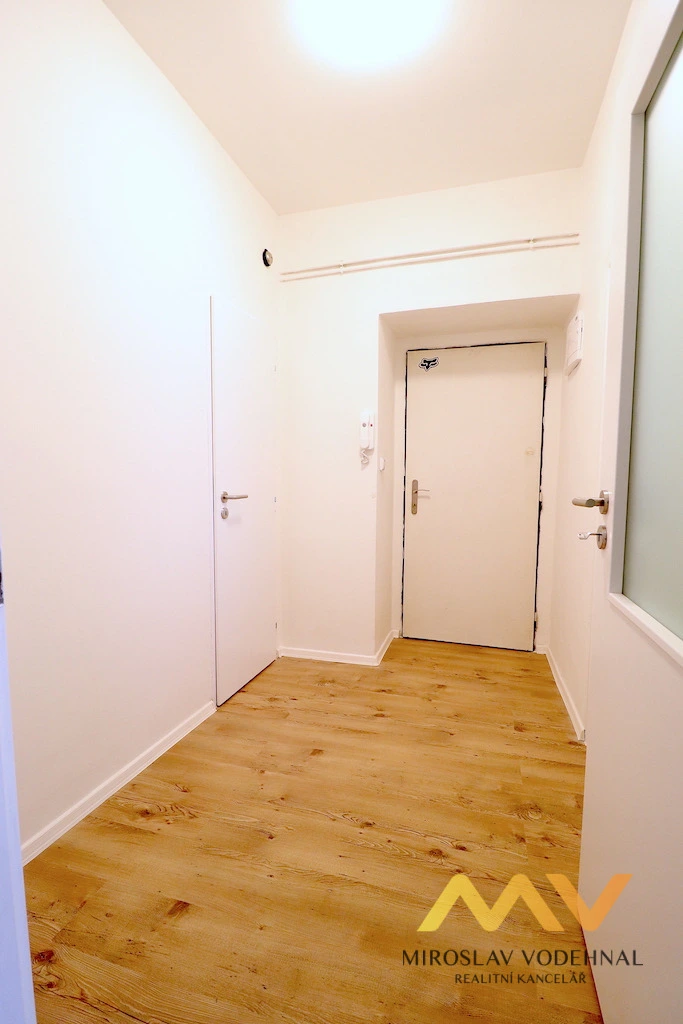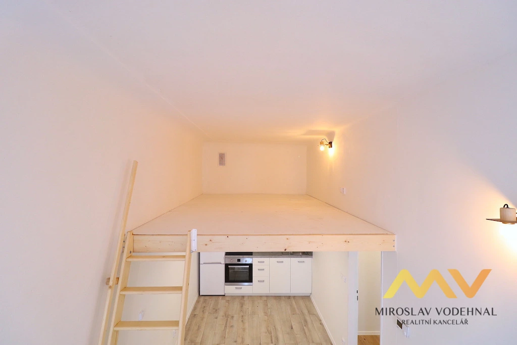 Jedná se o částečně zařízený byt po kompletní rekonstrukci, vybavený moderní kuchyňskou linkou se spotřebiči (myčka nádobí, el. trouba, sklokeramická varná deska, lednice s mrazákem, mikrovlnná trouba, odsavač par). V obývací části je vybudována galerie 8 m2 s výškou 1,3 m a přístupná po dřevěných variabilních schůdkách vhodná pro spaní, pracovní kout nebo jako odkládací prostor. Ložnice je nezařízená. Koupelna je se sprchovým koutem, toaletou a pračkou. V předsíni je prostor na umístění šatní skříně. Sklep není k dispozici.