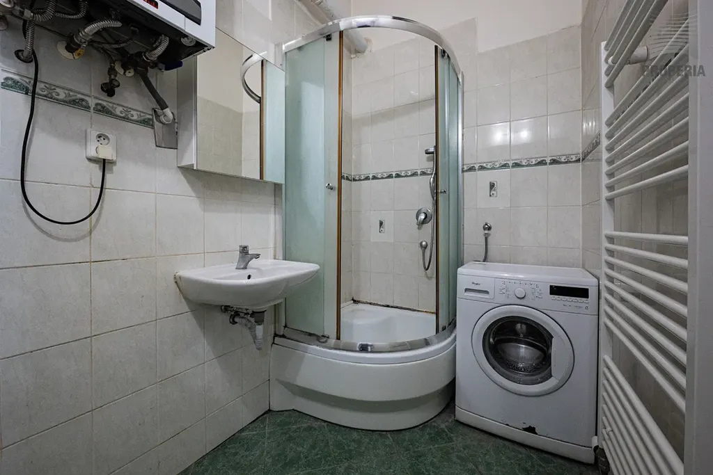 Vytápění i ohřev vody zajišťuje plynový kotel umístěný přímo v bytě.