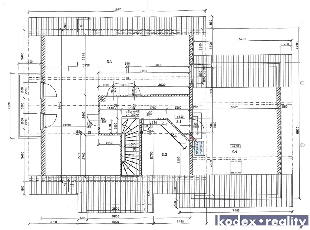 1.NP - chodba se vstupem na úložnou půdu, pokoj pro hosty/pracovna, 2x dětský pokoj, koupelna s WC a velká technická místnost s úložným prostorem, plynovým kotlem a pračkou.
