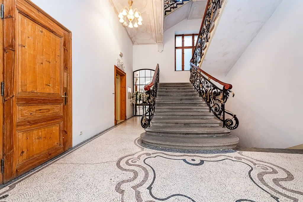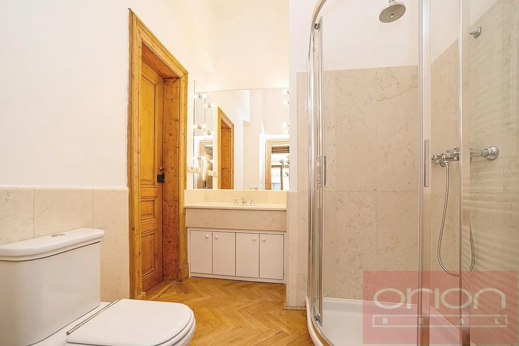 Nabízíme k pronájmu atypický luxusní byt 5+1 ve 4. patře secesního domu s výtahem, který se nachází v atraktivní rezidenční čtvrti Prahy 2 - Vinohrady naproti budově Vinohradského divadla, jen pár metrů od Náměstí Míru. Plně zařízený byt s celkovou plochou 171 m² nabízí vstupní halu, prostorný obývací pokoj se vstupem na balkon, kompletně vybavenou kuchyň, jídelnu, 3 ložnice, 2 koupelny (jednu s vanou a jednu se sprchou + toaletou), samostatnou toaletu a technickou místnost s pračkou a sušičkou. K vybavení bytu patří dřevěné parkety a mramorové obklady v koupelnách, internet, satelit. Lokalita s výbornou dopravní dostupnosí, občanskou vybaveností, v blízkém okolí je množství restaurací, kaváren, bister, obchodů a dalších služeb. Pár kroků od domu jsou stanice tramvají, autobusů a metra. Václavské náměstí či park Riegrovy sady jsou jen několik minut chůze od domu. Nájemné 5500 EUR měsíčně, možnost pronájmu parkovacího stání v podzemní garáži za extra 200 Eur za měsíc.