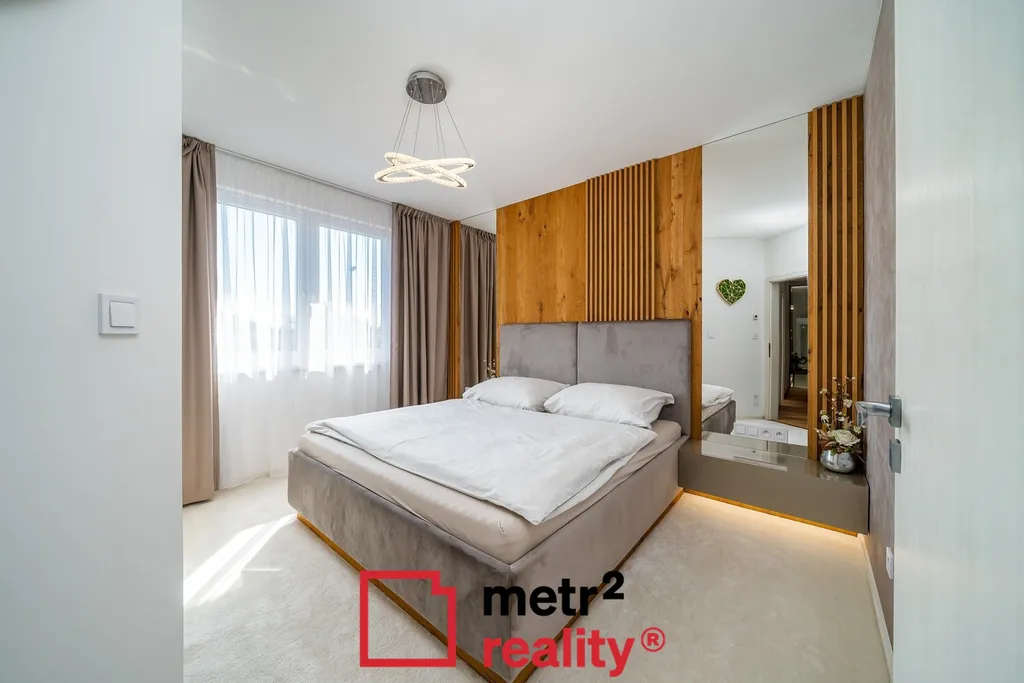 Dispozice nabízí samostatné vstupy do všech místností, prostorný obývací pokoj s klimatizací a krbem, kuchyni s vestavnými spotřebiči, komfortní ložnici s vestavnou šatnou, pěkný dětský pokoj a další menší pokoj vhodný jako pracovna nebo pokoj pro hosty. Vytápění podlahové (úspornými elektrickými topnými kabely) s osazeným termostatem v každé místnosti, ohřev TÚV el. bojlerem (dvojí sazba el.). Nízké měsíční náklady.