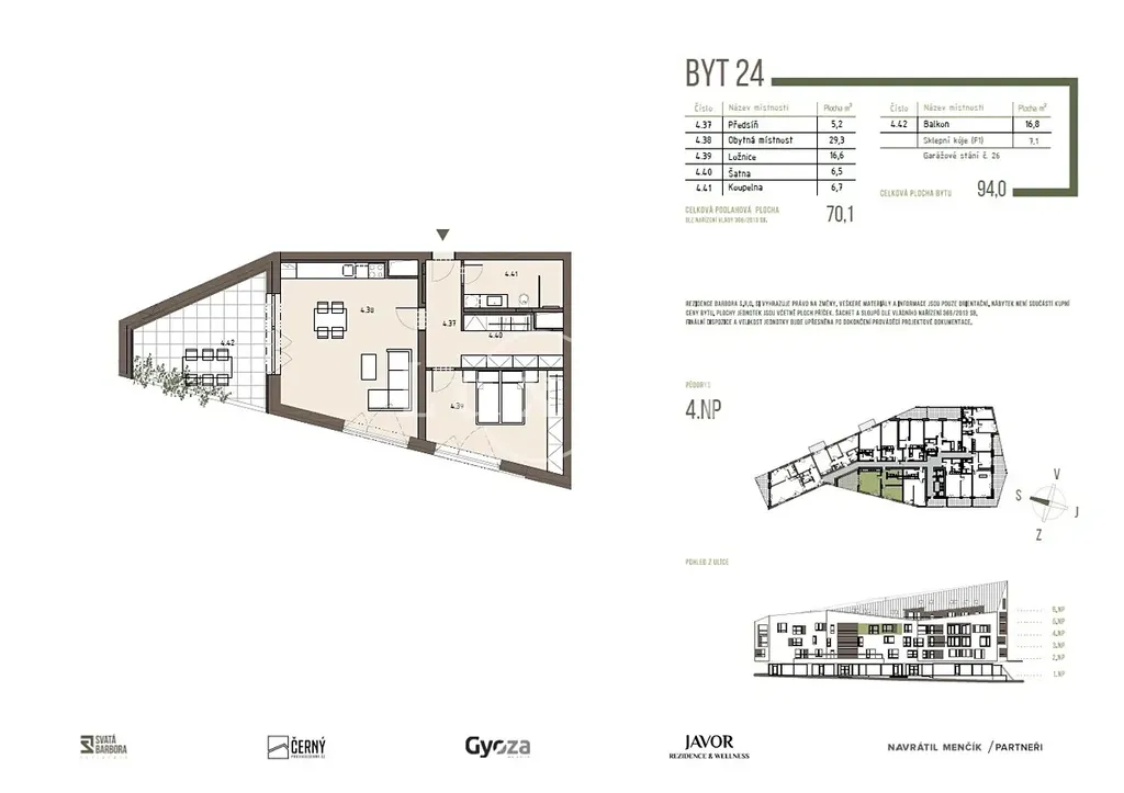 Nabízíme k prodeji apartmán v projektu Rezidence Svatá Barbora. Apartmán o dispozici 2+kk a podlahové ploše 70,1 m2 s balkonem 16,8 m2 se nachází ve 4. NP novostavby s plánovanou kolaudací od 2Q 2027.