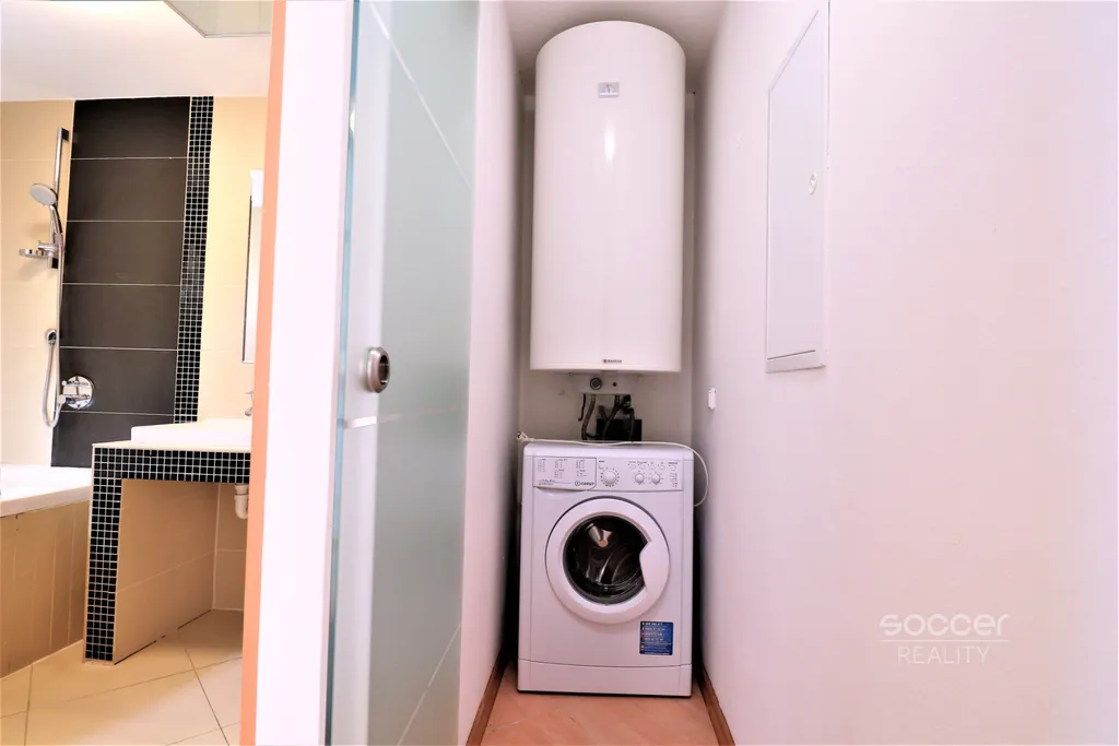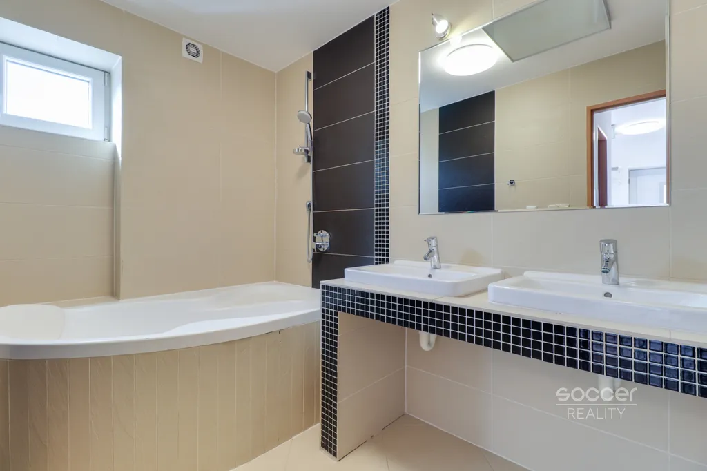 Dispozice bytu: velký obývací pokoj s jídelní a kuchyňskou částí (kuchyňská linka, myčka, el. sporák, lednice s mrazákem, mikrovlnka), ložnice 13 m2, ložnice 8 m2, vstupní hala, prostorná koupelna (vana, 2x umyvadlo), WC (toaleta, bidet a umyvadlo se sprchou), technická místnost s pračkou a bojlerem. Topení - elektrický spořivé infra. panely, podlahy dlažba. Možnost internetu a tel.