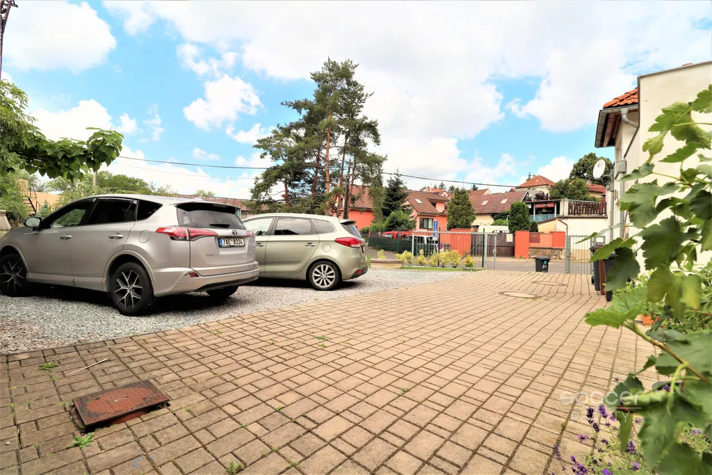 K bytu náleží i parkovací stání pro jeden vůz na oploceném pozemku, dále si můžete užít společnou zahradu s posezením, krbem a velkým sušákem na prádlo.