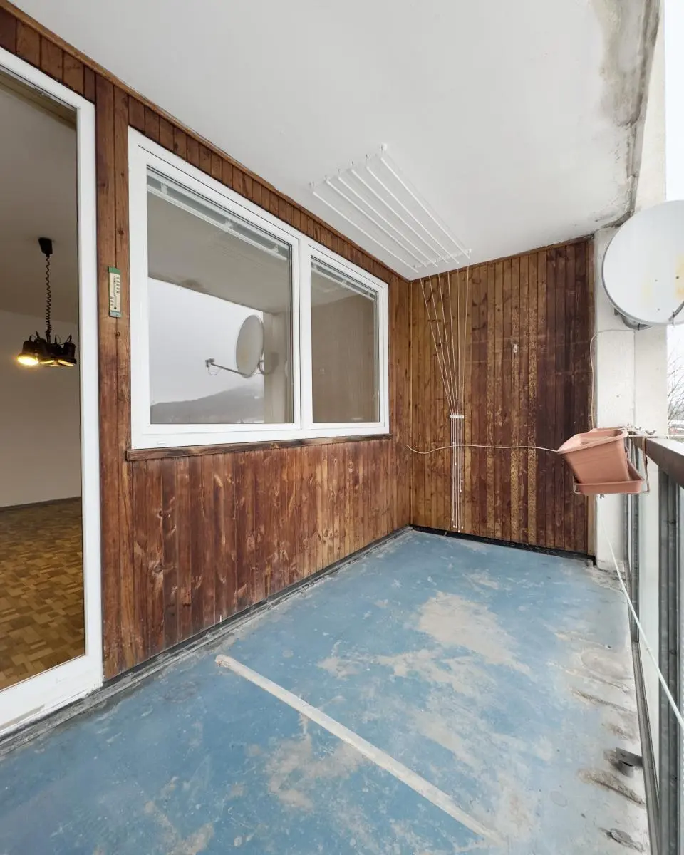 Velkým přínosem bytu je prostorná lodžie o výměře 7 m, do které je možné vstoupit jak z obývacího pokoje, tak z kuchyně. K bytu náleží také sklep v suterénu domu o výměře 2 m.