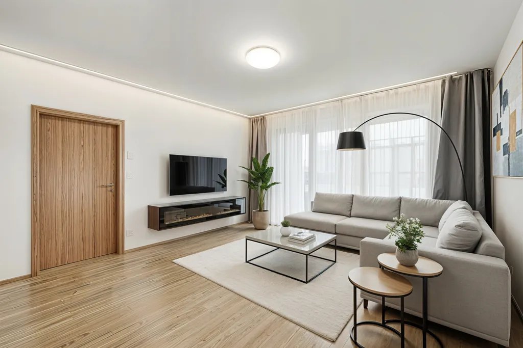 Dispozice bytu je řešena velmi prakticky a s důrazem na komfort. Obytný prostor s kuchyňským koutem má výměru 30 m², ložnice 18 m². Součástí bytu je dále komora, samostatné WC a předsíň s dostatkem úložného prostoru. Díky velkorysým proporcím jednotlivých místností působí byt velmi vzdušně a otevřeně.
