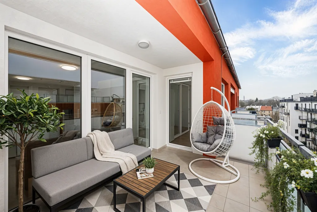 K bytu náleží také balkon o velikosti 9 m², který přirozeně rozšiřuje obytný prostor a nabízí příjemné místo k posezení.