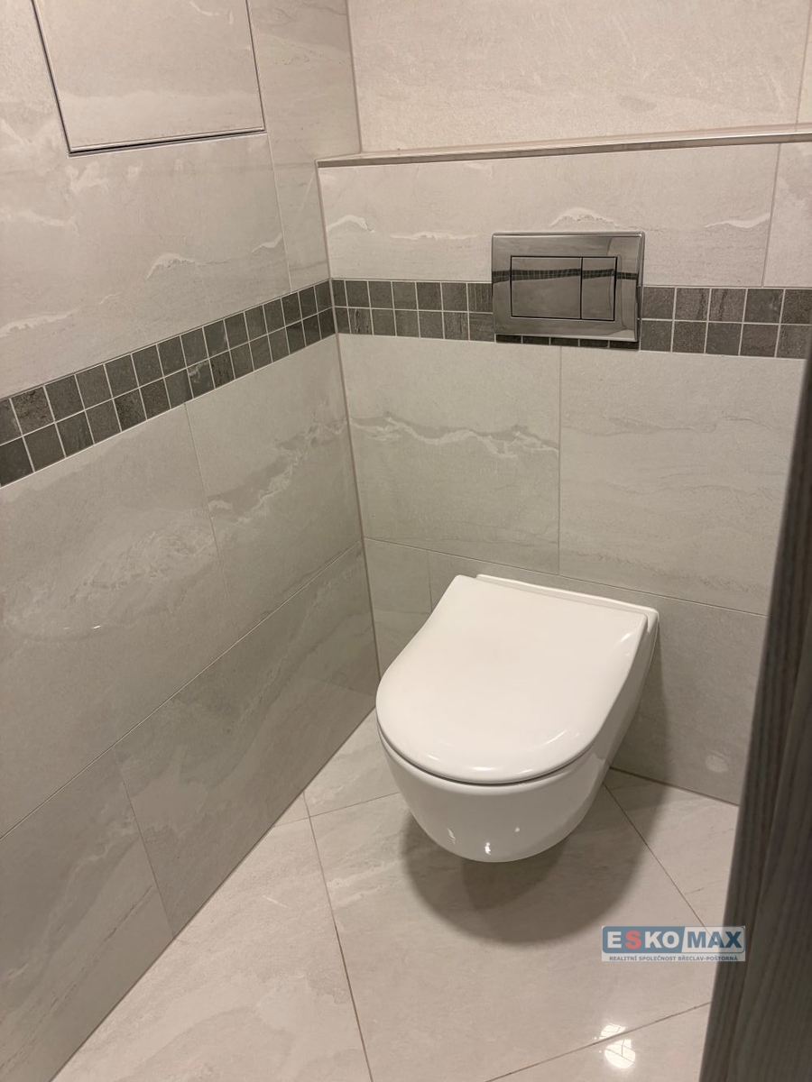 předokenní žaluzie, bezpečnostní dveře NEXT, kvalitní podlahové krytiny, moderní sanitu (viz foto), elektronické zabezpečení Jablotron, dálkové ovládání vstupních dveří do domu a topení napojené na Pražskou teplárenskou.