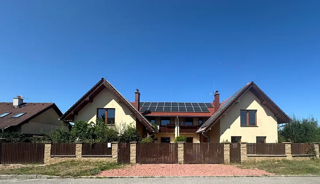 Prodám byt 3+kk v rodinném domě v obci Zvole vzdálené 4 km od Dolních Břežan, 9 km z Prahy 4. Byt je na půdorysné zastavěné ploše 101 m2, čistá užitná plocha 84 m2. Na střeše jsou instalovány fotavoltaické panely o výkonu 10 kW, bateriové úložiště s kapacitou 10,66 kWh, wallboxem pro nabíjení elektromobilů. Ve všech prostorách vodní podlahové topení. Obecní vodovod i kanalizace. Vinylové podlahy. V každém bytě vlastní komínové těleso a krbová kamna na dřevo. Zdivo Porotherm 30 cm +10 cm izolace. Ke každému bytu dle prohlášení vlastníka část zahrady ve výhradním užívání včetně parkovacího místa, další parkovací místo před pozemkem.Samostatný vstup i vjezd z ulice pro každý byt. Možnost přikoupit výhradní užívání pozemku o velikosti 150 m2 včetně bazénu. Přímo od majitele, neplatíte provizi.